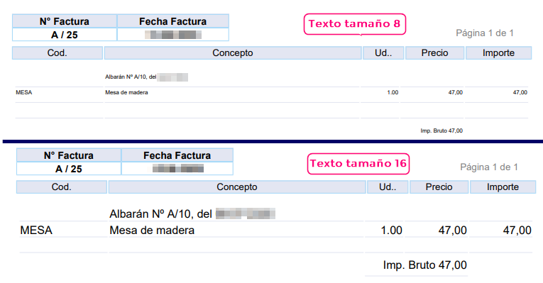 A continuación tienes dos ejemplos de documentos con el tamaño de texto en 14 pero diferente altura mínima de la fila uno seleccionando 8 y otro 24.