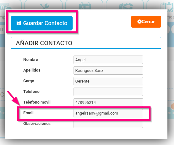 Se pueden añadir al cliente tantos contactos como sean necesarios.