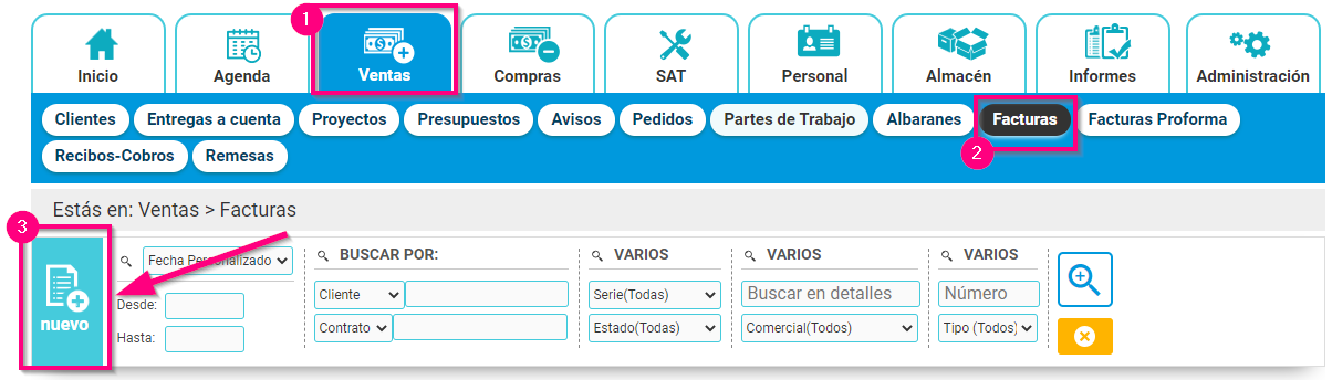 La factura normal y la electrónica se generan de la misma manera la única diferencia es a la hora de imprimirlas, y para que la factura electrónica sea valida deberá de tener añadidos en la pestaña de «Factura-E» los datos como mínimos los obligatorios explicados anteriormente.
