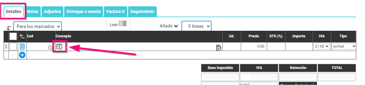 - IVA, porcentaje de IVA a aplicar a ese Artículo/Producto: 0, 4%, 10% y 21%.
