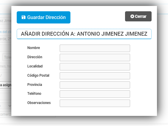 También seleccionar el icono para añadir una dirección a ese cliente,